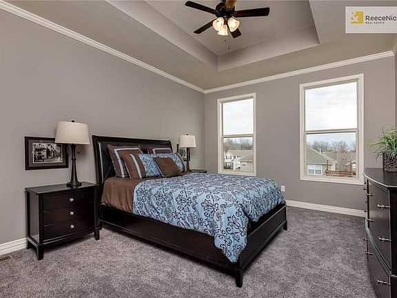 READY FOR A QUICK CLOSE! New Price, best Raymore Value under $300k. The Clayton2 Reverse 1.5 Story with Tuscan Elevation by award winning Summit Homes in a maintenance provided community. Enjoy luxury finishes and main level living including granite counters, custom cabinetry, large pantry and kitchen island. Beautifully tiled bathrooms & laundry. Wood floors in kitchen, dining, great room and halls. Gorgeous backsplash tile appointments throughout. Finished Basement, great storage. Includes Sprinklers &Gas Range!