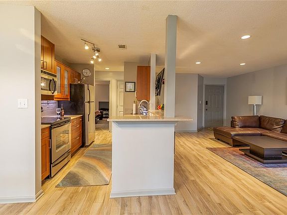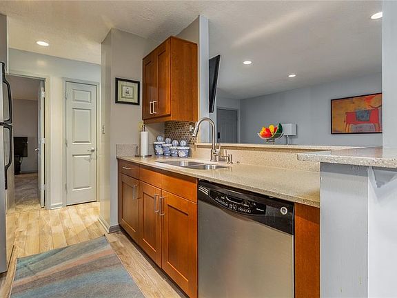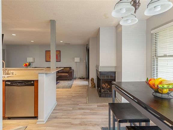 MULTIPLE OFFERS - HIGEHEST AND BEST DEADLINE 5PM SATURDAY MARCH 20TH. TOP FLOOR unit w/wooded view! Stylish laminate floors in all main living areas. Updated with gray paint scheme. Recessed lighting added to great room and hallway. Great room w/gas starter fireplace has access to the covered porch w/storage closet. Kitchen has been updated w/shaker cabinets and solid surface counter tops. Sunny dining room. Separate laundry room. NEW carpet in both bedrooms. Master suite features updated bath w/white subway tile, large tile shower, updated vanity and walk-in closet. 2nd bedroom is also oversized. Hall bath has been updated with travertine tile and new vanity. Swim/Tennis/Lake community convenient to everything around Perimeter Mall!