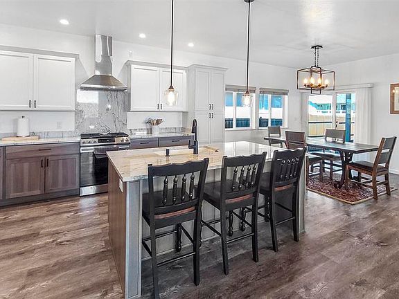 Check out the fabulous xeriscape with mossy rock! This home features upgrades galore: an extra insulated mechanical room, on demand hot water heater, 9 foot ceilings (except the living room is 11 feet,) 5 foot crawlspace for additional storage, solid core doors, natural stone countertops, matte black finish Moen faucets, a transferrable lifetime warranty on all cabinets, and more. The master bedroom has a walk in closet and a separate entrance to the covered wrap around porch. Both bathrooms have cast iron tubs and tiled showers and floors. You will want to see this upscale property!