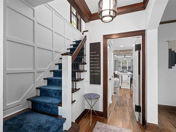 Welcome to 712 Greeley in coveted Tuxedo Park, Webster Groves! This captivating home offers 4 beds, 3 baths, and 2460sqft of space. With newer flooring and custom lighting, its undeniable charm shines. Enjoy the picture-perfect fireplace, built-in bookcases, spacious bedrooms, and elegant wood moldings with 9ft ceilings. Abundant natural light fills through picturesque windows. The fully renovated kitchen features 42-inch custom white cabinetry, Quartz countertops, and an expansive center island. Brand-new stainless-steel appliances and a gas cooktop elevate your culinary experience. The bar area seamlessly flows into the spacious den/family room, creating an inviting open concept. Custom ceiling beams add exquisite detail. Upstairs, discover 4 bedrooms, including a spacious master suite with vaulted ceilings. The master bath offers a double vanity/walk-in shower. The bonus entry to the master suite serves as a perfect home office or dressing area. This home is a true must-see!