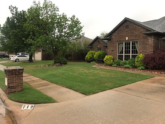Located in Beautiful Hawks Landing Subdivision. Step inside the front door of this beautiful open concept home, with an abundant amount of room for hosting family and guests. From the moment you enter, you are embraced by practical comfort and pleasant design. This beautiful 4 bedroom 2 bath home was renovated 6-years ago from top to bottom with custom (dark brown) stained wood throughout home and appliances, heat, air, hot water tank, etc. Large living area with beautiful wood burning/gas fireplace. Spacious gourmet kitchen features stainless steel appliances, custom cabinetry, pantry, pull out spice racks and trash can, custom hidden doggy door (NO DOGS HAVE LIVED IN HOME FOR 3-years), pot rack, 5 burner gas cook-top, convection oven/ microwave oven combo, etc.. Whole home salt free water softener. Custom tile throughout entire home. Walk in master shower, walk in closets, fold in vinyl windows for easy cleaning, etc.. Built in surround sound in living room as well as kitchen and backyard. Flush mount canned LED lighting throughout home as well as dimmers in Master bedroom and living room. 2 car attached garage with walk through attic and Storm cellar. Fenced in huge backyard with large patio, with an abundant amount of maintained landscaping. As well as 10x12 shed upon concrete with custom shelving for storage. A timed Sprinkler System. Roof has 30 year impact resistant shingles. Whole home security system. You will love this highly sought after community with pool, park, trails and walking distance to Mitch park. Conveniently located, close to shopping, dining and entertainment. Walking distance to top Edmond schools. Don't miss out. This home is truly move in ready...
