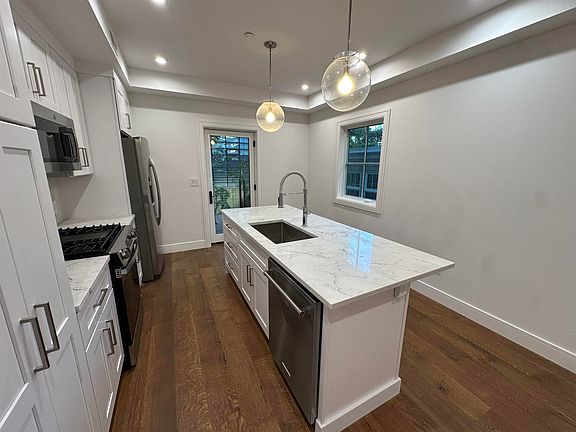 Be the first to live in this immaculate, newly constructed duplex with private terrace on Hoboken's most desirable street. Enjoy all the benefits of a brand new build right next to the most historic Mile Square City homes. Stunning chef's kitchen offers custom cabinets, stainless steel appliances, twin globe pendant lights, quartz counter, island and backsplash. Entertain with ease in your generous great-room featuring wide-plank hardwood floors, recessed lighting, modern sconce and dedicated dining area. Step outside to your private terrace to enjoy a morning coffee or evening glass of wine. Ample closet space and full bath with gorgeous custom tile-work, frameless glass barn door shower enclosure and Kohler fixtures complete this main level. Downstairs, your primary bedroom boasts twin oversized windows and a generous closet. Second, rear bedroom features perfect office nook, another great closet and garden views. Side-by-side washer dryer, still more great closet space and another absolutely perfect spa-like bath complete this lower level. Gorgeous design and elegant finishes create a one of a kind space in what is truly one of Hoboken's most desirable neighborhoods right next to the city's best shopping, dining and parks with easy access to NYC via PATH, ferry or bus. Rental parking available nearby.
