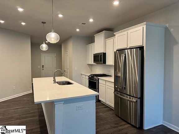 NEW STANLEY MARTIN TOWNHOME! Welcome to Wyndermere….. a quaint sidewalk lined gated community with low maintenance townhome living just minutes to the heart of downtown Greenville. Our townhomes have primary bedroom suites located on the first floor as well as a finished 2 car garage. The Gaines presents a sleek and charming design in this two-story townhome, where elegance meets comfort. The main level bathes the conjoined family room, sunroom, and kitchen in warm, natural light, thanks to an abundance of windows. The kitchen, designed with an open concept, features a large island and ample space, perfect for family and guests to mingle and enjoy snacks. The back patio offers a delightful retreat for summer days, while select homes come with an electric fireplace, adding a cozy touch during winter months. Upstairs, two bedrooms boast walk-in closets, offering ample storage, and the primary suite on the main level has been meticulously designed to ensure sweet dreams and maximum comfort.