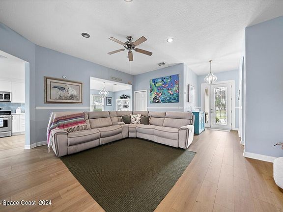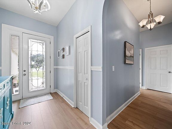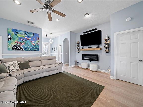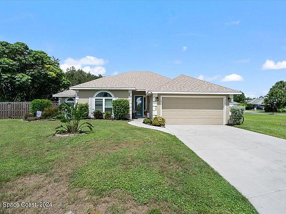Brand New Roof, Windows Upgraded in 2021/22, HVAC 2018! Beautifully remodeled home nestled on an oversized corner lot in a quiet cul-de-sac. Step inside to find a modern and stylish interior, featuring a gourmet kitchen with pristine white cabinetry, a charming farmhouse sink, and a striking coastal blue backsplash. The kitchen is a chef's dream, complete with upgraded appliances and a cozy breakfast nook overlooking the lush backyard. The home's split floor plan offers privacy, with the primary suite on one side and the additional bedrooms on the other. Outside, enjoy Florida summers on the covered patio. Perfect for relaxing or entertaining! The extra-spacious side yard provides endless possibilities for outdoor activities, all within a peaceful and private setting. This is Florida living! Excellent location zoned for well rated schools, close to I95, aerospace industries, and short commute to Orlando or the beaches.