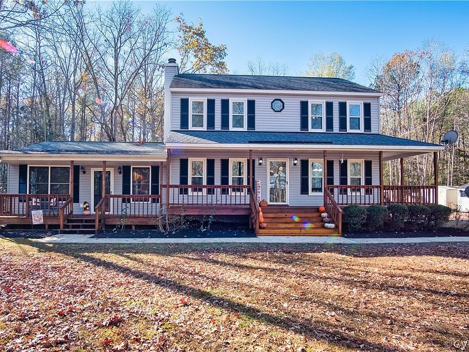 Looking for space? In-laws moving in? This 4 bedroom, 3.5 bath, 2 story home with a wrap around porch has been recently painted, new carpet in the in-law suite/office and sunroom, kitchen has new countertops, flooring and the cabinets were just painted, decks and front porch were just stained, shutters were just painted, new insulation and vapor barrier in crawl space, hall bathroom has new flooring, lighting and vanity, primary bathroom was recently beautifully renovated. Gorgeous brazilian wood floors throughout the living room, dining room, stairs and upstairs hallway. There is even a separate entrance to the in-law suite/office. The sunroom is even heated and cooled - a year round room to enjoy the outside views of blooming spring, fall leaves, summer and winter snowfalls. All this on over 5 acres! Come see for yourself and enjoy some tranquility in this quiet country setting while sipping coffee or your beverage of choice sitting on the very spacious front porch or back deck!