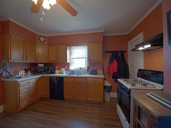 Cozy and comfortable two bedroom home ready for you! Newer laminate flooring on the first floor. Open front porch and enclosed back porch for extra storage. Good size kitchen/dining area. Gas heat, replacement windows and carport in backyard.
