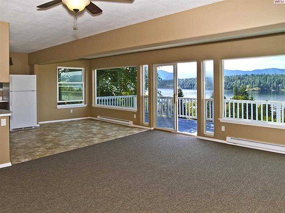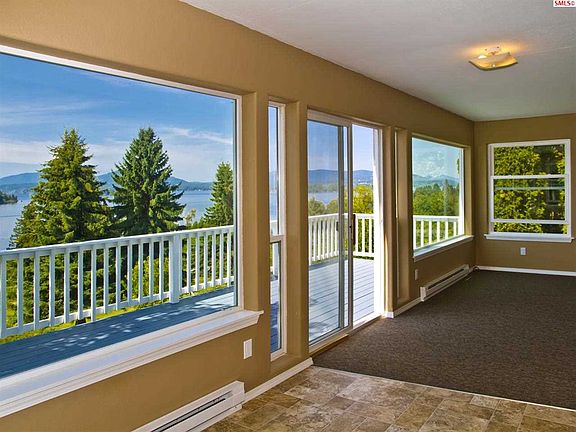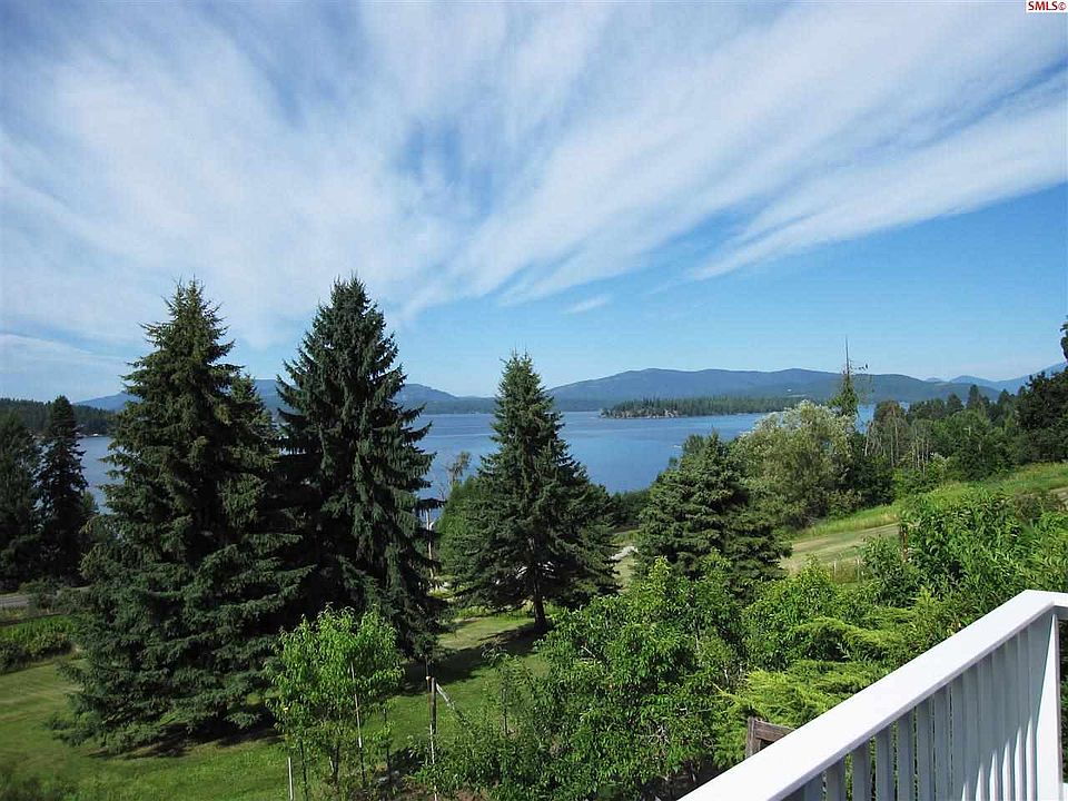 Lake Pend Oreille unobstructed views in East Hope. Spacious deck overlooks the orchard with apple, pear and plum trees, beyond to the marina and stunning sunsets over the lake mountains. 1156 square foot main level two bed, two bath, has been recently updated to create open living areas that welcome the natural light. Partially finished 744 square foot lower level with additional bath is open to your imagination. Large two car garage and additional high bay garage for parking and storage.