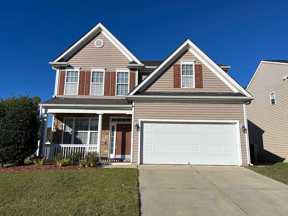 Welcome to this beautifully maintained 3-bedroom, 2.5-bath home located on a quiet cul-de-sac in Lakeland Estates. Built in 2006, this spacious 1,948 sq ft home features an open floor plan with vaulted ceilings, abundant natural light, and a cozy fireplace in the family room. The kitchen boasts granite countertops, stainless steel appliances, and a stylish tile backsplash—perfect for cooking and entertaining. Mirrors in family room may convey with an acceptable offer. Upstairs, you'll find a generous primary suite with a walk-in closet, two additional bedrooms, and a convenient laundry room. Enjoy outdoor living in the private, fenced backyard with a patio, ideal for relaxing or hosting guests. Two-car garage, low HOA dues, and easy access to downtown Raleigh, I-440, and nearby parks, schools, and shopping make this a fantastic place to call home.Don't miss this move-in-ready gem in one of Southeast Raleigh's most convenient communities!