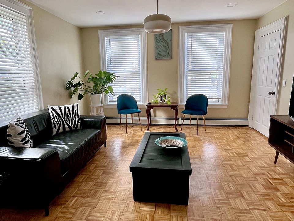 Completely renovated in 2024, this bright and airy second-floor apartment offers modern living. The space features an open-concept layout, updated finishes, and plenty of natural light throughout.