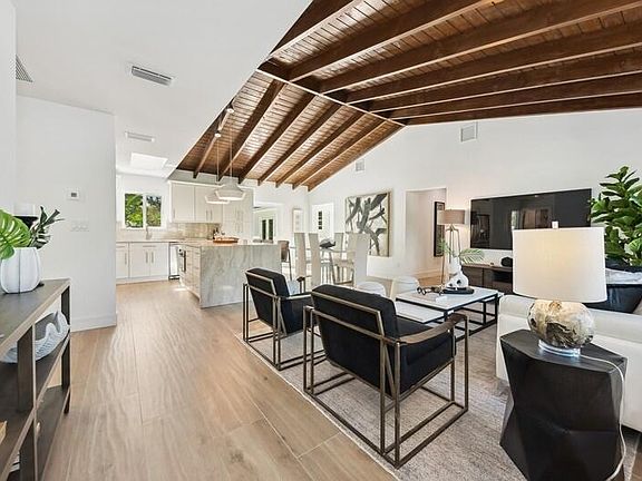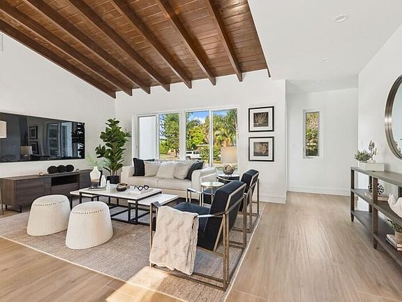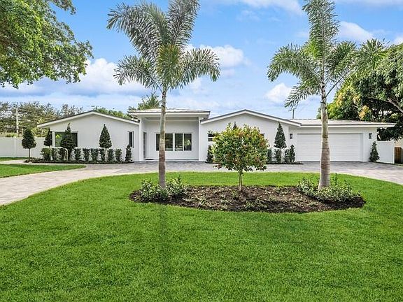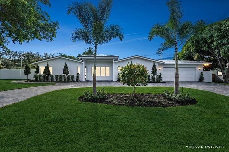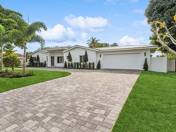 Perched on nearly 1/2 an acre, this double-lot, new construction waterfront property truly has it all. As you walk into the stunning home you are immediately struck by the vaulted knotty pine ceilings accentuating the open and bright layout. The gorgeous chef's kitchen boasts an oversized island, quartzite countertops, custom cabinetry, and high-end stainless steel appliances. The enormous master suite is located in its own wing and includes two massive walk in closets, a seating area, and a spectacular bath complete with wet room, custom double vanity, and soaking tub. The three way split floorpan allows for extra privacy with a VIP suite separate from the other bedrooms, as well as two guest rooms at the other end of the home. All guest rooms are generously sized with gracious closets and designer lighting. Impact glass and high end, wood-like tile are found throughout the home. Sliders in the master bedroom, guest bedroom, and living room open onto to the backyard oasis. The huge fenced in yard includes copious green space, an oversized saltwater pool complete with sunshelf, and a private dock perfect for water enthusiasts. The spacious two car garage and circular driveway provide ample parking. The property is located in a non-HOA neighborhood just minutes to Downtown Delray and the beach. The home's gorgeous new construction, waterfront location, and massive lot size make it truly unique--schedule a showing today!