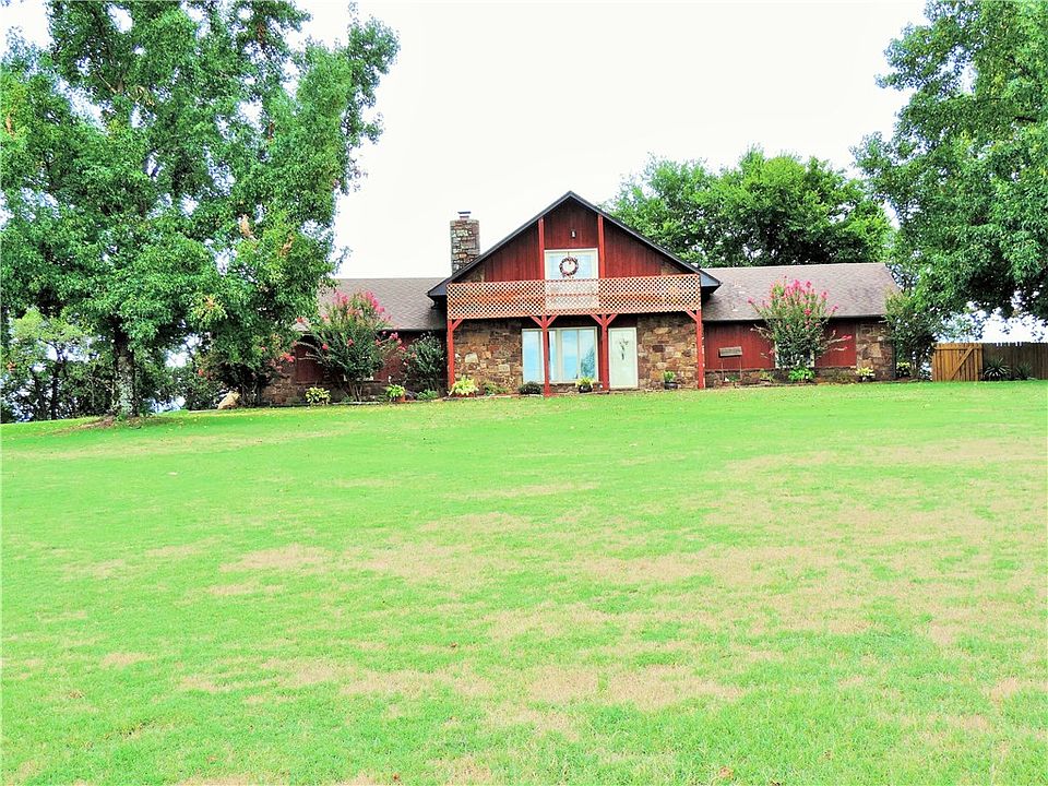 Home with a view! Sit at the outdoor kitchen and enjoy the view to the South. There are 2 views from the Master BR to the North and to the South. 3 BR and 2 BA. 2 BR and 1 BA down and 1 BR and 1 Bath up. This home has many updates including knockdown ceilings, fresh paint throughout inside & out, newer counter tops, brand new carpet & wood laminate flooring. Both bathrooms have been updated. All appliances in home do convey. New kitchen appliances, newer windows, storage bldg, 2 car garage +/- 3.55 acres