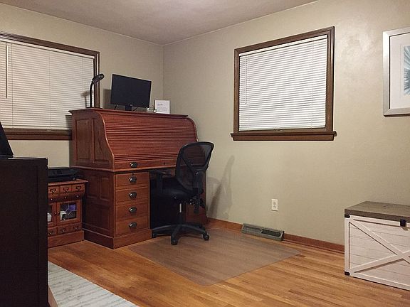 Three bedroom brick ranch home with front covered porch. Full unfinished basement with 1/2 bath. Deep L shaped lot with back gated entrance to a 32x30x14 building with electricity. Building has a 12ft door and