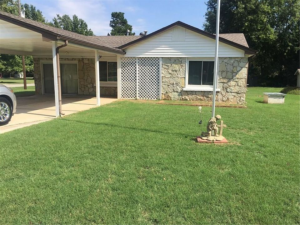BACK ON MARKET!!! CONTRACT BUSTED Nice home. 2nd living could be 3rd bedroom. Many updates: Heat & Air - 6 yrs old, New windows - 4 yrs ago, roof in 2017, refrigerator - 3 yrs old, stove is 4 yrs old. Hardwood floors in the living room! Freshly painted interior throughout. (Courthouse has 721 sq. ft. but garage converted which total square footage is 1066.) 2 car carport + 1 car detached garage. Corner lot. Choctaw Schools.
