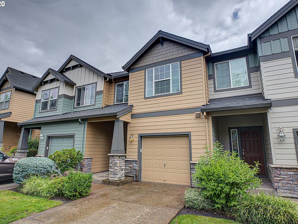 Warm elegance in the sought-after townhome community! 3 bedroom, 2.5 baths, 1619sqft & 1-car garage. Pristine condition with new carpet & paint. Gourmet kitchen features tile countertops, hardwood floors & gas range. Great room open concept floor plan high ceilings & gas fireplace with mantel . Master suite w/large walk-in closet & double sinks with tile countertops. Upstairs bedrooms are spacious & 2nd level laundry. Fenced backyard and walking distance to shops! Don't miss this one!