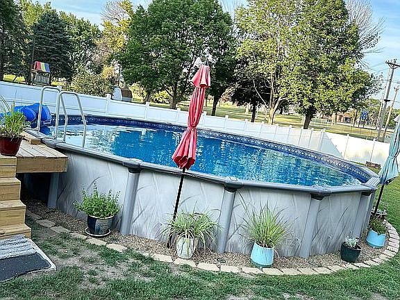 Ranch style home with attached garage located at 712 N Main Street Fonda, IA. This is a 3 bedroom home with the possibility to have 2 additional bedrooms. One of the bedrooms located in the basement does have an egress window. This home has had several recent  improvements, new windows in 2020, new central air unit in 2021 as well as a new hot water heater in 2021. There is a large backyard that has a new vinyl privacy fence which was installed in 2021. This home also has a pool that was professionally installed in 2021. This home is located close to a park, public swimming pool as well as a ball field where you can sit in your backyard and enjoy the games!