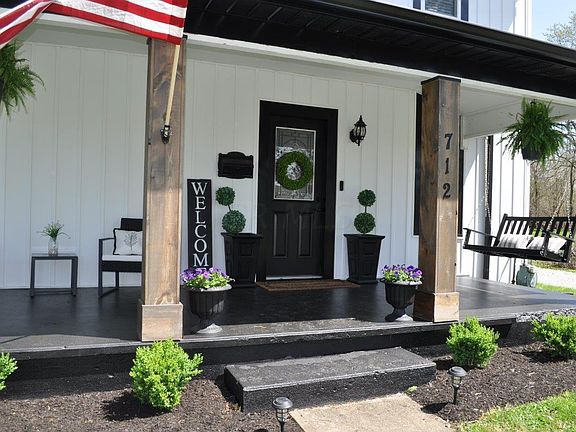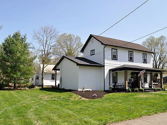 Fully renovated farmhouse with front porch for sitting and back patio for entertaining. Situated on 1/3 acre with a one car detached garage, plenty of off street parking and summer kitchen. The main floor features a living room, kitchen with eating bar, plenty of cabinets and new appliances, half bathroom, the owner's suite with a private full bath, and laundry room with wash basin. Upstairs includes 2 spacious bedrooms with the other full bath. Everything is new for you to enjoy. Nothing to do but move in!