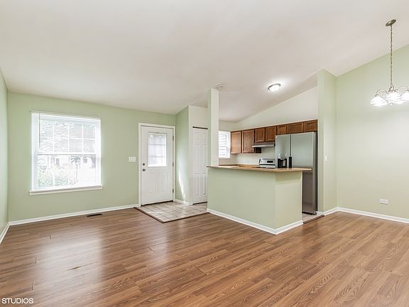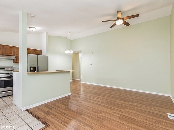 Discover the charm of this ranch townhome in Island Lake, offering single-level living, modern comforts, and low monthly assessments. Upon entering, you'll be greeted by a bright living room with a partial vaulted ceiling. The kitchen features stainless steel appliances and a convenient breakfast bar. Enjoy the ease of in-unit laundry with built-in cabinets for additional storage. The primary bedroom boasts a massive closet, sliding glass door to the backyard, high ceilings, and a ceiling fan. The second bedroom also provides backyard access through its sliding door. Freshly painted throughout with crisp white trim, this home is move-in ready. Ideally located near Maple Ridge Park, restaurants, and shopping, this home is perfect for investors and homeowners alike. Don't miss out on this opportunity in Nantucket Village - schedule your visit today!