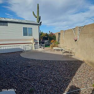 Looking for an opportunity to live in the sought after Venture Out at Mesa? Here is your chance! This is an active adult 55+ community and this manufactured home is looking for some TLC. Views of the Superstition Mountains, numerous amenities and your own land to boot. Venture Out is one of the few RV/Park resorts where you can own your land and home. The resort amenities include two olympic sized swimming pools (The East Pool Complex has a wheelchair lift), four hot tubs, saunas, men's/women's locker rooms w/ showers, exercise facilities, lawn bowling, croquet, pickle ball, paddle tennis, twenty shuffleboard courts, batting and golf driving cages, putting green, horseshoe pits, bocce ball courts and eight tennis courts. This will not last long- Appointment only.