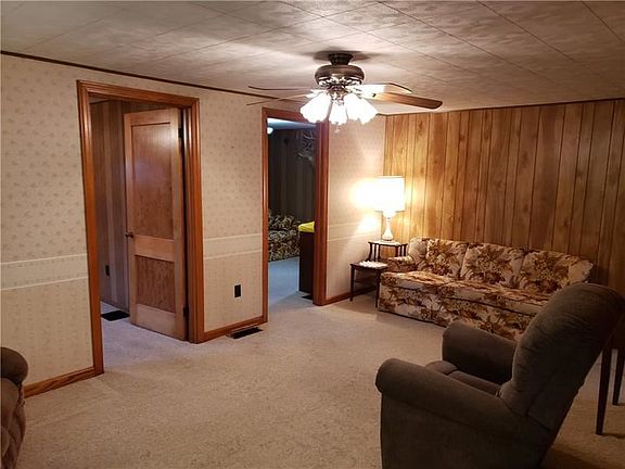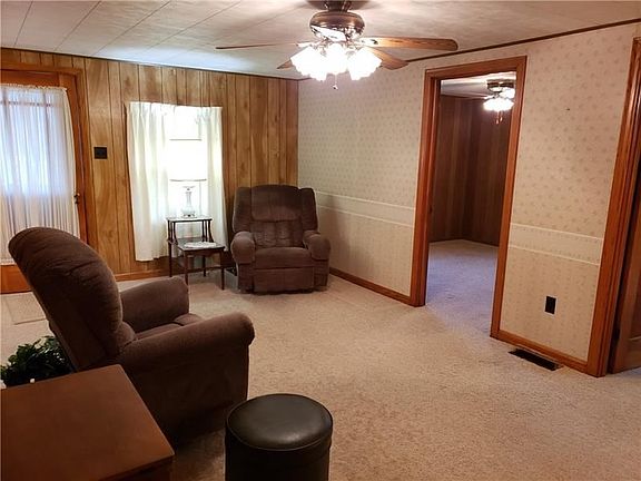Well cared for one owner home on over one acre! Covered picnic pavilion overlooks large wooded back yard. Recently renovated full bath on the main floor, large living room with eat in kitchen that's fully equipped with appliances. Two roomy bedrooms complete the first floor. Spacious lower level offers laundry and utility area, heated workroom/mancave and large two car garage with plenty of storage above! Home has very low heating/cooling bills!! Roof replaced within the last 5 years. Minutes to I79, schools and shopping