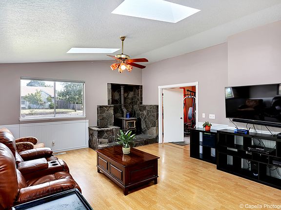 Great opportunity to live in the heart of Molalla! The living room is spacious with vaulted ceilings and skylights allowing for plenty of natural light in. With laminate flooring, wood fireplace and new paint you’ll feel relaxed and perfectly at ease. The open concept kitchen includes dining area, laminate flooring, ample cabinet space and slider to the backyard. Bathroom has stunning tile floors, double sinks and closet space. The yard is extensive with new fence, patio and dog-run perfect for privacy or entertaining! Home also features new carpet, new roof and much more you need to see in person!