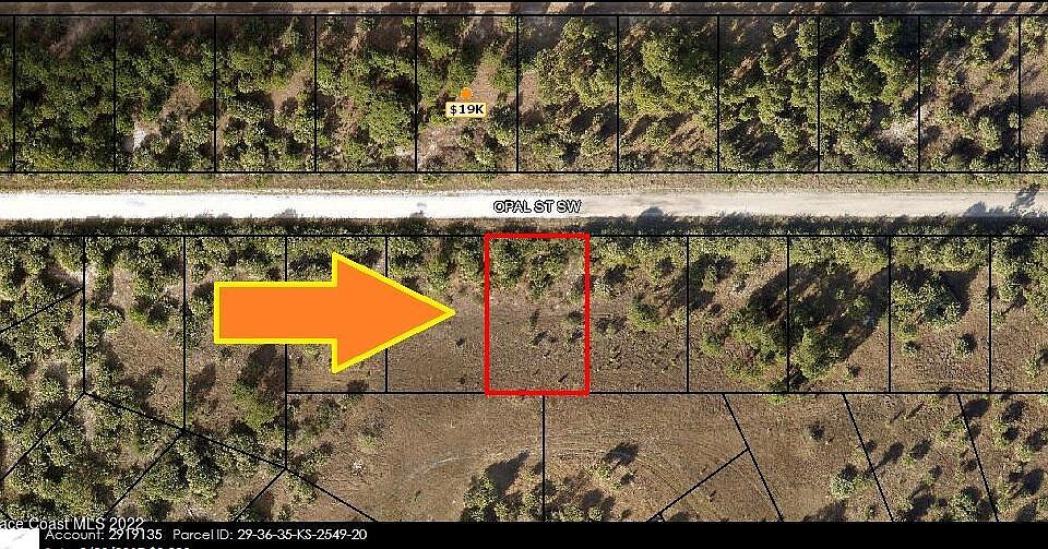 0.23 acre buildable single family residential lot available in Port Malabar Unit #49 of Palm Bay. Located in the southwest section, this lot is just 3.3 miles - 7 minutes to Westside Elementary School, 5.2 miles - 11 minutes to the Publix Supermarket, 16.5 miles - 34 minutes to Melbourne Airport, 18.4 miles - 37 minutes to the beaches of Indialantic. From exit #176 of I-95 go west on Palm Bay Road for .7 miles, left on Minton Road for 3.3 miles, right on Jupiter Boulevard for .1 mile, left on DeGroodt Road for 4.6 miles, right on St Andre Boulevard for 1.2 miles, right on Madden Avenue for .2 miles, and right on Opal Street. The lot will be on your right.