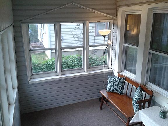 Sunny spacious twin home located on a beautiful tree lined street. This home has been well cared for and boasts freshly painted walls and updated kitchen and bath. Enter through a cozy enclosed front porch into the main house, featuring an open floor plan with in-laid wood floors. The updates include newer vinyl siding and updated windows as well as the addition of air conditioning. Easy access to major highways and bridges. One year home warranty included!