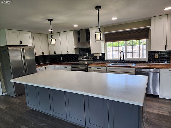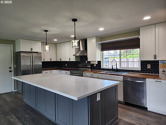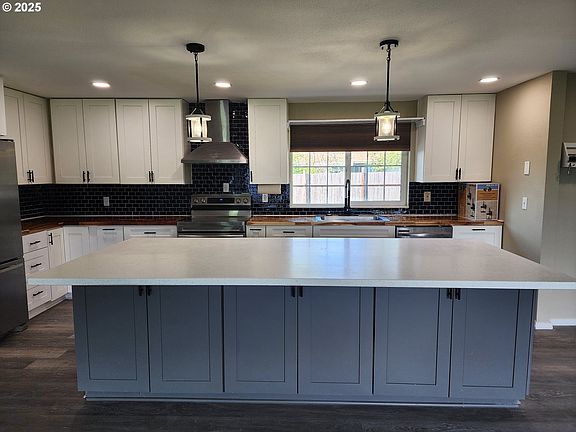 Make this charming Ranch style home yours. This 968 sq ft home features 2 bedrooms, 1 bathroom and an attached garage. The home is updated with a newer kitchen including lots of extra storage in the large island, butcher block counters, stainless steel built-in dishwasher and a range with a hood. Conveniently located by the Molalla High school, City Parks and local swimming pool. Enjoy a covered back patio for outdoor living in this large private fenced backyard ideal for outdoor gatherings and relaxation. Large quality built building and firepit in backyard are definitely an added benefit. Let your imagination run wild! This is a great place to call Home!
