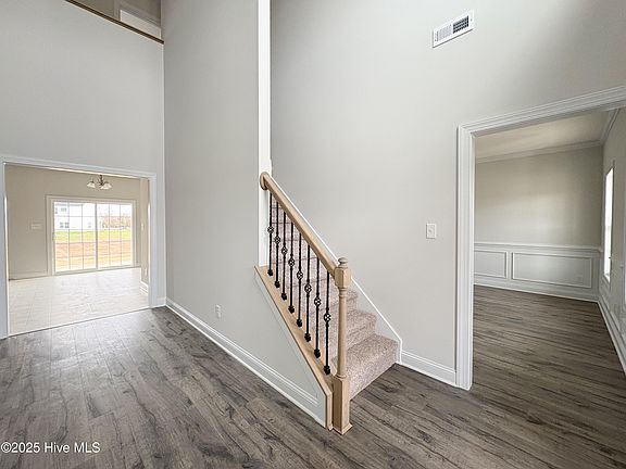 Welcome to the beautiful Catalina floor plan in Village Creek! As you walk in from the large covered front porch, you enter into a 2-story foyer that is open to the formal dining room. The open layout on the first floor holds a beautiful large kitchen with plenty of cabinets and counter space, along with a bar for extra seating! The large family room has plenty of natural light, along with an electric fireplace to warm up with during those chilly nights! Upstairs, you'll find the large primary suite complete with a trey ceiling. The en suite bathroom features a dual vanity sink, soaking tub and separate shower! The walk-in closet is large enough to fit all of the clothing you'll need for the ever-changing Carolina weather! A second full bathroom upstairs is shared by the additional 3 perfectly-sized bedrooms! Make your appointment today, you don't want to miss this! *Buyer to verify schools. Builder reserves the right to alter floor plan, specifications and features. Similar photos, videos, and cut sheets are for the purpose of floor plan layout only. Similar photos and videos may include upgrades and/or features and selections that are no longer available and may not be included in your specific home. Included features vary from community to community. Buyers or Buyers Agents should confirm included features and selections available with the listing agent and view the included features sheet for the development before presenting an offer. Please note: Arches are no longer a standard feature.
