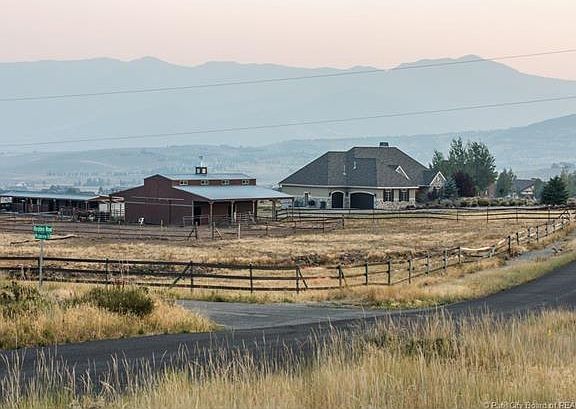 Sweeping views of all Deer Valley and Park City Resorts; this custom home offers a large main floor master suite with adjacent en-suite office. The wall of south facing windows rounds out the entertainer's dream kitchen and comfortable great room which also has a floor to ceiling stone fireplace. Two additional bedrooms, huge multi use laundry room complete the spacious main floor. Walkout lower level includes a family room with comfortable gathering area, room for games, full kitchen and spacious patio. Three bedrooms and a peaceful zen exercise/yoga room. Four stall barn with hay storage and tack room. Other out buildings with four stalls and chicken coop. Over seven acres, partially fenced including arena and training circle. Ride right out of the barn to access miles and miles of trail riding. Restaurants and shops of Kimball Junction only minutes away. Radiant heat & AC, 6 total car garage