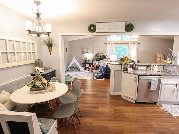 - Kitchen/Dining Room Combo, Separate Dining, Breakfast Bar, Pantry, Open Floorplan, Vaulted Ceiling(s), Workshop/Hobby Area