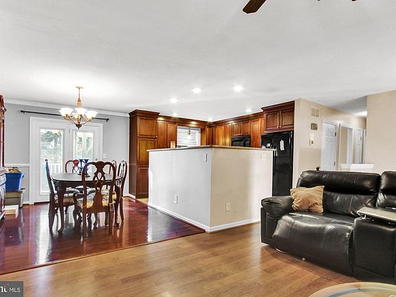 Split Foyer with 2 Car Garage situated at the end of Cul De Sac. Updates include Roof, Gutters/Downspouts, HVAC, Kitchen remodeled. Living Room has Gas Fireplace and is open to Dining Area and the Remodeled Open Kitchen. Dining Room has Hardwood Floor, Decorative Moldings and French Door to the Deck. Kitchen has Tile Floor, 42" Cherry Cabinets, Granite Countertop, Breakfast Bar, Black Appliances, Pantry Cabinet and Recessed Lights. Primary Bedroom has Double Door Wall Closet and Primary Bath with Shower. Hall Full Bath has Updated Vanity, Mirror, Light & Wall Cabinet along with Shower/Tub Combo. Lower Level has a Family Room with Slider Walkout to Patio, Powder Room & Laundry & Utility Closets.