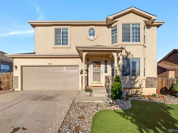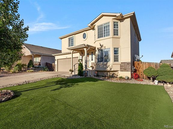 If you have been searching for a move-in-ready 4 Bedroom Home with a showstopper backyard lot exuding tranquility in every nook … your search is over! This meticulously cared for two-story gem is nestled in the community of Wild Oak Farms (NO HOA)- with RV Parking on the side of the fully fenced tiered backyard. NEW ROOF TO BE INSTALLED PRIOR TO CLOSING (buyer’s color choice). Entering this stucco home from the covered porch, you step in to the Living Room complete with gas fireplace & large bay window teeming with natural light. Adjoining this space with wood laminate flooring beneath is the dining room, powder bath for guests, & walkout to the 14’ deck. The updated Kitchen features a large island, abundant white cabinetry, & sleek SS appliances. This kitchen is perfect for culinary adventures & entertaining, as it seamlessly connects to the dining & living areas in an open concept. The upper level boasts your own personal retreat in the expansive Primary Suite Bedroom. Featuring vaulted ceilings, oversized bay windows, & walk-in closet this space naturally flows into the en suite 5pc Primary Bathroom. Two additional spacious bedrooms, full bathroom, & upper-level laundry (washer & dryer included) complete the second floor. The fully finished basement boasts a Family Room with built-in speakers, gas fireplace, & conveniently offers a private entrance to the backyard. The fourth bedroom & full bathroom complete the basement level for guest suite privacy. BONUS! The spacious landscaped backyard features a concrete patio, terraced garden beds, two storage sheds, & mature landscaping in this serene outdoor living space- perfect for grilling or firepit conversations under the Colorado night stars! 2 Car Garage, central air, ceiling fans, fully landscaped front/back yards, & sprinkler system included! Conveniently located off the Powers Corridor along close to military installations, Parks & Schools, Shopping, Entertainment, & So Much More!