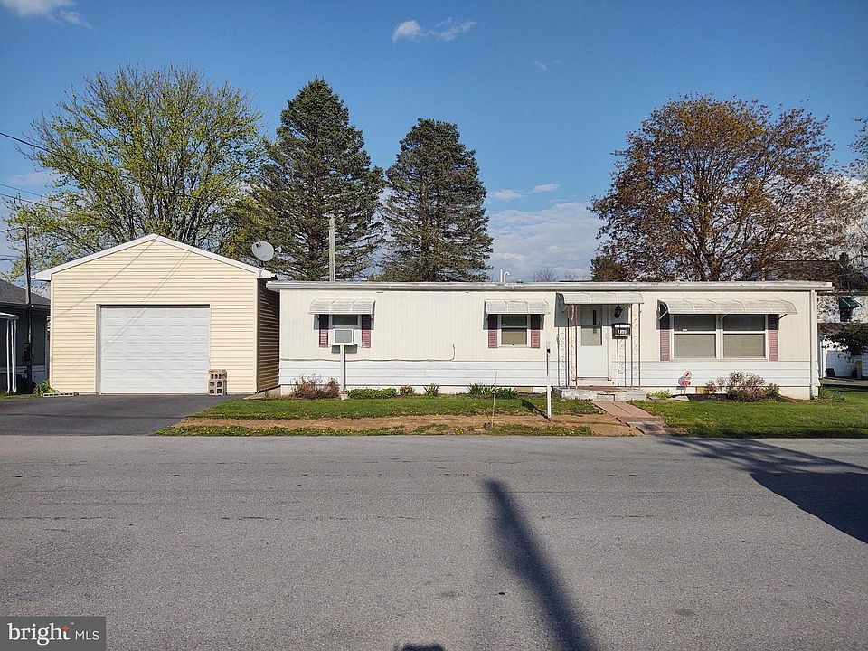 Modular ranch home located on a corner lot. Home offers 3 bedrooms, 1.5 bathrooms. Large living room with open dining area. Kitchen has laundry area. Enclosed large patio. Crawl space under modular home. Oversized high ceiling detached garage is a car enthusiast's dream. Prior owner used a car lift inside for repairs. Large storage area in rear of garage that was once used as an office. Home also has a shed. Home is being sold in "AS-IS" condition.
