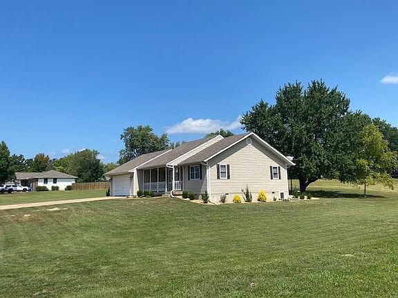 Immaculately kept home on corner lot in Houston, MO. What a beautiful home offering 3 bedrooms, 2 bathrooms with split plan. Open concept for K-D-LR. Oak Kitchen with granite tops & Island offering breakfast seating. All newer stainless appliances. Living area with corner rock fireplace with gas insert. Roomy master and bath with tub/shower. Additional bedrooms and bath on other end of home. Bath two offers walkin shower. Patio doors in Living opens to all season sunroom with heat & air. Two patio areas off each side of sunroom for outdoor enjoyment. New landscape around perimeter of home. Large crawl space access with lighting under home. Attic access in the garage with floored area for storage and lots of insulation. Garage has opener, builtin shelving and side entry door. Real Hardwood and carpet in bedrooms. You must see to appreciate this home.