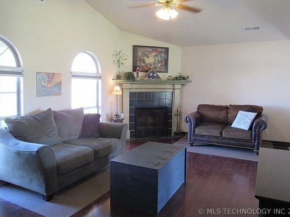 Centrally located close to shopping, schools, highway access and minutes from Skiatook Lake. Situated on a cul-del-sac lot with large fenced backyard and covered porch. Freshly painted, new guttering and ac. Open concept living room with fireplace that adjoins to the dining space which leads to the kitchen. The kitchen is equipped with a gas stove, dishwasher and refrigerator. Blinds installed on all bedroom windows. Ceiling fans in all bedrooms and living room. OPEN House Sunday April 2, 2023. If you think you want to make application, be sure to come prepared to pay $50 application fee Pet deposit required. Renter is responsible for all utilities and yard maintenance. Renter will be required to have felt tips on all furniture to protect floors.
