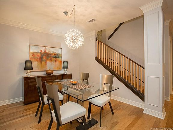 Only townhouse for sale at The Village of central Park. Updated w/clean urban design in pristine condition. Granite kitchen is open to living room & dining room with fireplace. Upstairs den w/fireplace. 3 bedrooms, master has balcony w/view of downtown. Move in ready. Very light and bright. Very open floor plan that is great for entertaining. High ceilings and beautiful plantation shutters throughout. Gas range is very desirable. Rear entry 2 car garage with SAFE ROOM. Call Frankie Harkey for more information at 1.918.230-6315.