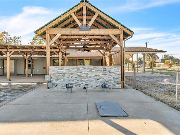 This stunning estate spans 4.77 acres and features a secure gated entry, ensuring privacy and tranquility. Located in the highly regarded Carl Albert school district, this fully renovated home combines updated finishes with thoughtful design. With an appraisal value of $455,000, step into some great equity! The appraisal is available upon request. The kitchen has been fully updated with granite counters and stainless appliances. The exceptional outdoor living space includes a gourmet outdoor kitchen, perfect for entertaining and al fresco dining. The open outdoor area is shaped like Oklahoma and is perfect to play corn hole with OU and OSU logo stones to pick side to be on (see pic #6). A well-equipped greenhouse with water and heat opens up endless gardening possibilities. This house is built like a tank and has some of the best infrastructure for its price point! When touring the home, you will be able to tell that the seller was a commercial electrician and spared no expense. The upgrades throughout the land includes updated water spigots and electrical outlets thoughtfully spaced to make full usage of the land. Additionally, the large storm shelter (7'x10'x7') provides peace of mind during severe weather along with an additional barn to provide protection for the toys. This estate beautifully blends comfort, style, and functionality in a serene natural setting, making it an ideal retreat.