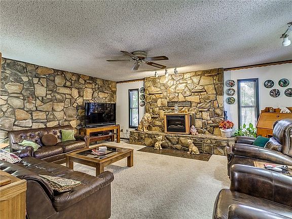 Great location that is convenient to everything!This home has been lovingly maintained for many years. Every upgrade was exceptional in quality. Fantastic curb appeal with added landscaping, carport with roof for added storage and flag pole dedicated space. The cov'd porch is very inviting & a wonderful space as well. Upon entrance, great formal dining/living space with large window for natural light. Natural wood shelves for display & opens to large breakfast area, with tons of space Breakfast bar and opens to add'l living space/den and large kitchen. Kitchen is large with add'l area for bar/serving or seating. Opens fully to beautiful professionally added den or family room with rock wall accent & fireplace hearth. All bedrooms are nice with good sized closets and ceiling fans. Master has been remodeled from 1/2 bath to include full shower. Backyard is a GORGEOUS oasis of plants, mature trees, wishing well, 2 outbuildings, including 1 with electric and window unit. Great Home!