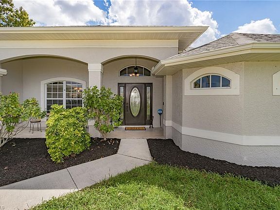This 4 bedroom (each w/ a closet), 2.5 bathroom, 2 car garage pool home has new interior & exterior paint! Custom built home w/ open floor plan has 2,450 sq ft & offers 2 living areas, dining area, breakfast nook, & bar. Features include tile throughout (NO CARPET), high vaulted ceilings in formal living room & family room, built in desk in kitchen, separate laundry room w/ laundry tub, & NEW epoxy garage floor. All stainless steel appliances (BRAND NEW dishwasher, microwave & refrigerator) & new recessed lighting added in kitchen. New fans in 3 guest bedrooms & living area plus blinds throughout. New fixtures w/ LED lights in guest bathroom & kitchen. Huge master bathroom has walk in shower, stand alone tub, dual sinks, & 2 walk in closets. Newly painted pool deck provides a large pool w/ water feature & a western exposure to watch sunset. CITY WATER & SEWER. NO FLOOD INSURANCE REQ. Located off Skyline Blvd just S of Pine Island Rd, tons of restaurants w/in minutes. Walking distance to boat ramp, BMX park, & baseball field.