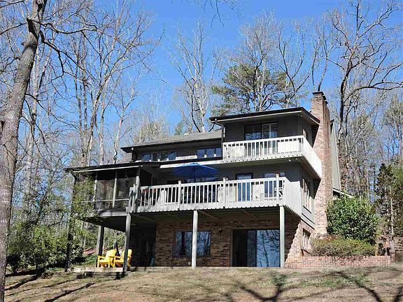 A Unique Home with Magnificent Lake Views and Lots of Privacy. This home is Lakefront on 2.6 Acres with 172 feet of Shoreline on the Main Channel. Deep Water, Close Corp Line, and Covered Slip Dock. When you enter into this home, you immediately realize the abundance of natural light, fabulous views and eclectic design. Nothing Cookie Cutter about the Home. Soaring Ceilings, Multi-Level Living Space indoor and outdoor. The Main Entrance Leads into the Open Living Space which includes the kitchen, dining and Living Room, along with a half bath and Laundry room. The Second Level houses the Master Bedroom and Guest room both with Lake Views, along with two bathrooms. The third Level is a perfect retreat for kids or guest and has two additional bedrooms. The Terrace Level is the perfect in-law suite, rec room area, or Office Space. In addition, the Terrace level has a large storage area. Enjoy Coffee or Cocktails on the Screen Porch, Multiple Decks or Patio.The Carport is a unique design with Storage above. The front lawn is all natural and requires little maintenance and the backyard is lovely with a variety of foliage and a grassy area. If your dream is to own a lake home that offers privacy, great water,and loads of space to entertain, you must make an appointment to see this home.