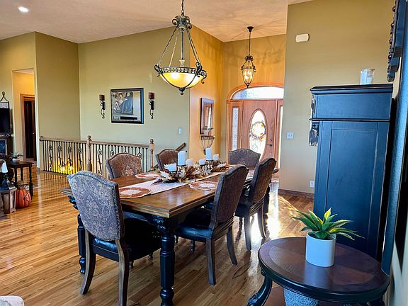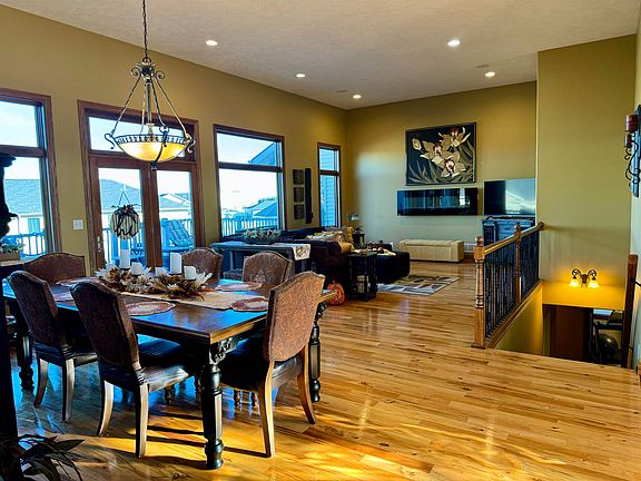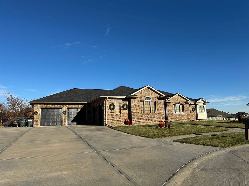 Beautiful custom home located in a cul de sac. This spacious ranch offers over 5,000 total square feet and features a walkout basement with an abundance of daylight windows. With too many amenities to name, the main floor includes: new wood flooring throughout main floor living spaces, large rooms, 10' ceilings, large dining area, open kitchen with walk-in pantry, eating area and bar area, large master suite with 5 piece bath and walk-in closet, additional main floor bedroom, and a large laundry room with sink and an abundance of cabinetry. The fully finished basement features 2 additional bedrooms, 1.5 baths, rec room/family room, theatre room with projection screen, bar area/second kitchen and a storm shelter under the front porch. Outside you will find an expansive, deck with composite decking, patio outside of walkout basement, new siding, new roof, new gutters, 4 car heated attached garage, additional truck/ rv parking and underground sprinklers.