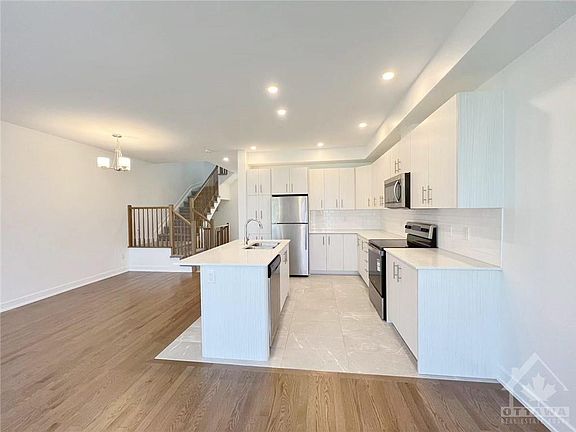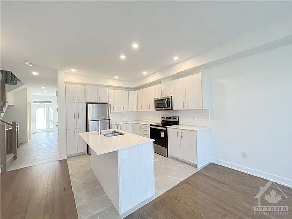 Welcome to this Claridge townhome Located in Sundance, Findlay Creek, very close to shopping, transit, schools, trails/parks & in a very family oriented & safe neighbourhood. Main level feat. large open concept living w/large foyer upon entering, powder room bath, inside access to garage, sun-filled formal dining/living room, eating area, & designer kitchen w/brilliant white quartz tops, beautiful cabinets, brand new appliances, & tons of storage & counter space w/oversized island. Upper level feat. 3 generously sized bedrooms & 2 full baths w/Primary bedroom featuring full en-suite bath including stand up glass enclosed shower. Finished basement feat. large rec room w/large window, large storage areas & laundry room. Tenant pays all utilities. Copyright Ottawa Real Estate Board (OREB). All rights reserved. Information is deemed reliable but not guaranteed.