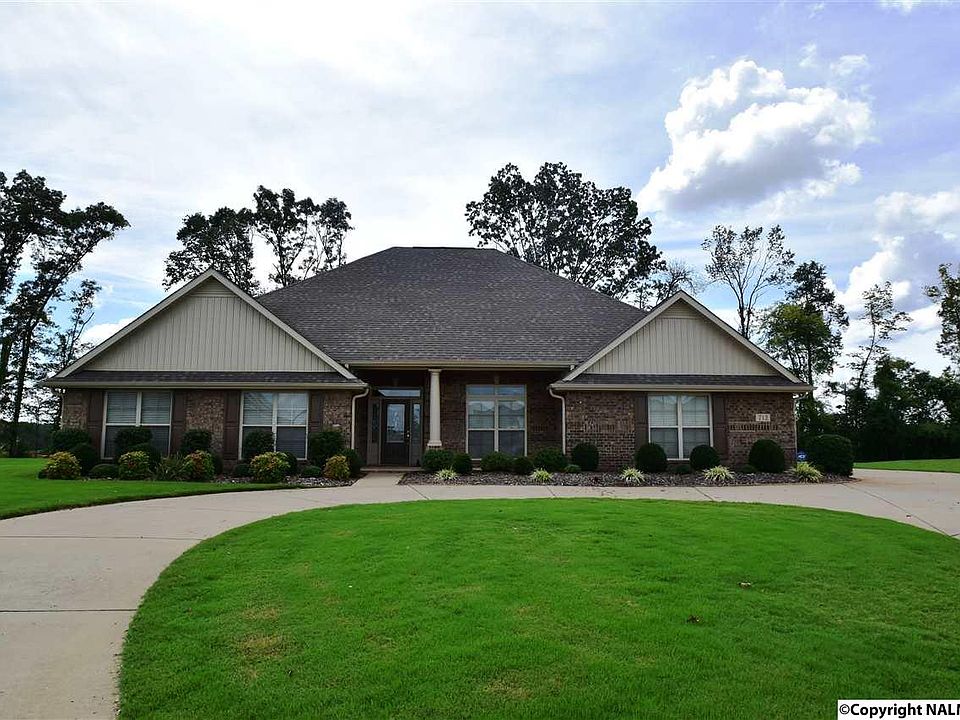 Soaring ceilings & open floor plan are great for entertaining! Huge kitchen w/ stainless steel appl, granite ctops, walk-in pantry, & loads of prep & storage space. 24x15 master suite w/ 2 walk-in closets & glamour bath w/ jetted tub & separate shower. 4 add'l nice size BRs. Great mother-in-law suite w/ private bath. Quiet cul-de-sac setting w/ tree lined byard. Screened porch & Grilling patio has 220 service for hot tub. Master Planned Community w/ Pool, Clubhouse, Gym, tennis & basketball courts provide exclusive lifestyle. 4 min to Redstone Arsenal Gate 7. Home warranty.