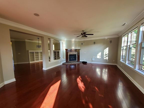 Martha Stewart-designed ranch home on the water in the Twin Lakes community. Partial brick front, Hardiplank siding, covered front patio, screened back porch, hickory hardwood floors in living area, wall to wall carpeting in bedrooms, many other premium upgrades inside. Ten solar panels on rear roof. Pre-wired for Google and AT&T fiber and Spectrum cable. Whole-house water conditioning system. Brand-new roof and entire home painted inside and out! Renter will be responsible for: - Water, Gas, electric(solar panels) and lawn maintenance/care. - One professional home cleaning before move out.