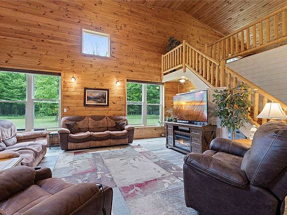 Discover your dream home on a breathtaking 33-acre wooded estate, offering unparalleled privacy and tranquility. This charming 3-bedroom, 3-bathroom residence features an open-concept living area with large windows that flood the space with natural light, showcasing stunning views of the surrounding landscape. All bedrooms are conveniently located on the first floor, including a spacious primary suite that provides comfort and privacy for all. Upstairs, an expansive family room offers the perfect space for entertaining guests. Outside, enjoy sunny days in the above-ground pool or relax on the covered patio. The property boasts ample garage space, providing plenty of room for vehicles, storage, or a workshop. Nature enthusiasts will appreciate the wooded trails and serene surroundings. This unique property offers the perfect blend of comfort, luxury, and nature—schedule your viewing today and experience the lifestyle you've always dreamed of! This home includes an HSA Home Warranty.