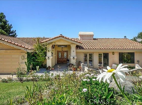 Welcome to Rancho Grande Estates! Experience the elegance of Spanish-style architecture with this 3,100sf home featuring 3 Bedrooms, 2.5 Baths, and a 3-car garage. Enter through the grand double entry doors into the open foyer with its uniquely angled ceiling, providing access to all the social rooms. The cook's kitchen opens onto the upper balcony, perfect for Barbecuing; It boasts granite countertops, tiled backsplash, cherrywood-finish cabinets, and a center island with pendant lights and stove top/oven. Stainless steel appliances, including a trash compactor and Bosch Dishwasher, plus a large breakfast nook, createing a comfortable and convenient area for casual dining. The Family room has a "pass-thru" to the kitchen, ideal for entertaining. It features a gas Fireplace with stucco and tile detailing to add to the Spanish style. The adjoining flagstone patio includes a natural rock water feature for further enjoyment. The Formal Living room has a gas fireplace and 3 glass paned doors leading to the balcony with expansive views. The large Den with cathedral ceiling is complete with a custom walled bookcase, wet bar, and wine storage. The lower-level leads to the spacious Master Bedroom with a wall of closets and an ensuite with a double sink marble-top vanity, tiled shower, and step-up tub. All 3 bedrooms open to a full adjoining balcony. This home also includes Central Vacuum, ample storage, and drought-tolerant landscaping.