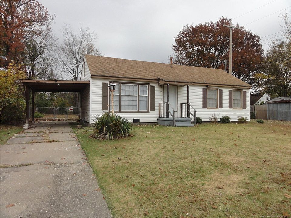 Great investment opportunity! Seller says CH sq ft is incorrect & doesn't include the laundry room. It should be 944 sq ft. 2 bed 1 bath home has updated weatherhead, electrical box & meter box. Home also has HVAC, wood floors, extra lg laundry room, fridge & stove remain. New carpet in 1 of the bedrooms. 1 car carport & fenced backyard. Property sells as is