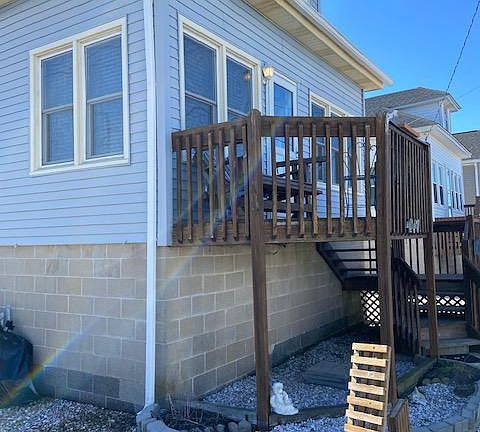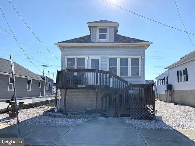 Welcome to West Wildwood! A loved 3 bedroom 1 bath RAISED home is waiting for you. Sit on your front deck or in the year round enclosed front porch. Living Room flows into Dining Room featuring new flooring. Bathroom has walk- in shower. Laundry Room has cabinet space includes washer & dryer. Brand New windows in back enclosed deck. Newer A/C and Heater and Plumbing. Large walk-up Attic for storage. Outside shower(needs to be hooked up) Detached Garage needs major repair. Driveway for convenient parking. This is an Estate Sale. Being sold As-Is.