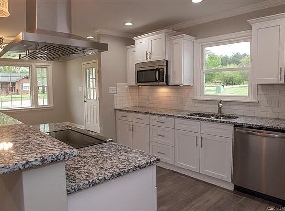 Beautifully renovated 3-bed, 2-bath home located in desirable Landis is ready for you to make your own. The kitchen boasts custom, locally made cabinetry, granite counters, slide-in range, gorgeous range hood, massive pantry, large custom island, and is open to the dining area and living room. The extra-large master bedroom has a walk-through closet, and en suite bathroom. The master bathroom has custom, locally made cabinetry, granite counters, a brand new soaking bathtub with custom shower surround, and amazing tile flooring. The large laundry room is just off the kitchen, but tucked off on it's own with plenty of room to add cabinets. The two other bedrooms are on the other side of the house and share the second bathroom with guests. All of the rooms that aren't tiled have gorgeous vinyl plank flooring that makes a statement! New gravel in the driveway and turn around area make it convenient to get in and out of. Come view this incredible property today!