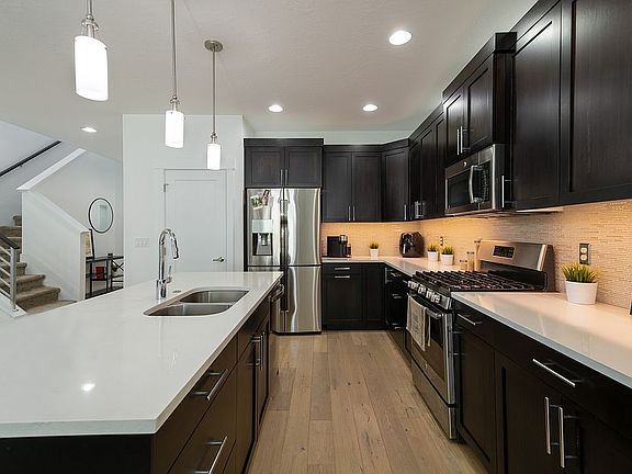 Gorgeous modern home in SE Boise! Turnkey with newly painted interior. Open floor plan! 3 bedrooms with attached bathrooms & walk in closets. Features include engineered hardwood flooring throughout main level & gas fireplace with tile surround. Kitchen has island/breakfast bar, quartz counters, walk in pantry, SS appliances w/gas range, tile backsplash and beautiful cabinets. Entry mud bench & loads of natural light. Covered patio and oversized 2 car garage. No HOA. Close to airport, freeway, BSU & more!